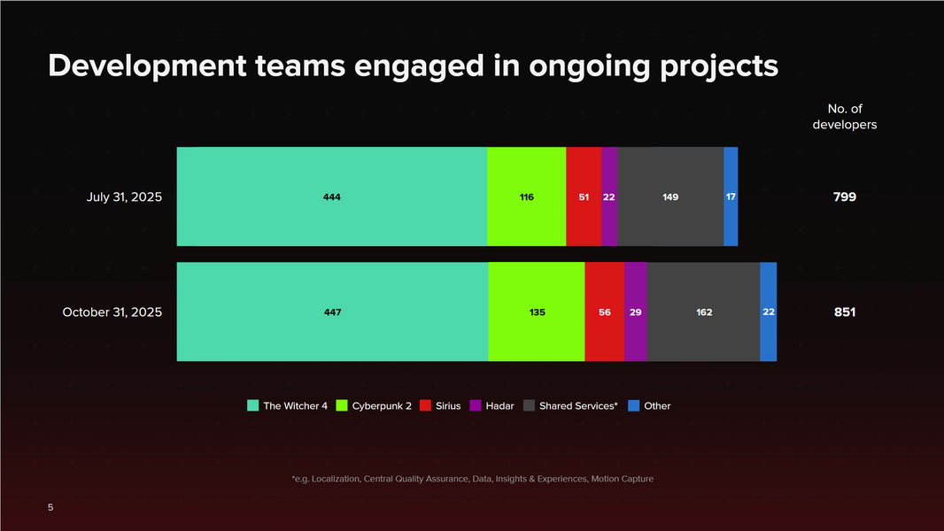 Также CD Projekt RED, что основная команда трудится над уже анонсированной The Witcher 4, но и над Cyberpunk работа ведётся довольно большой группой из 135 человек, что на пару десятков человек больше, чем полгода назад.