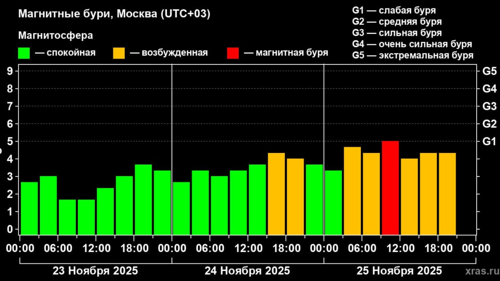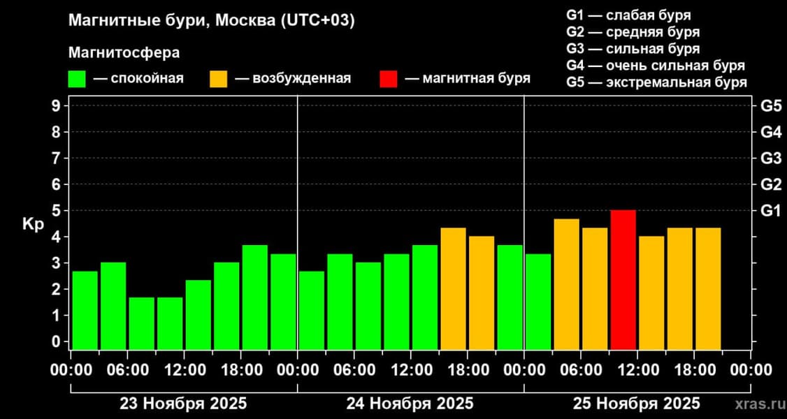Неожиданно сильный эффект проявился в полярных сияниях — их индекс дважды достиг максимума, хотя всплески пришлись на дневное время. Сияния фиксировали главным образом в северных регионах. Событие должно стихнуть уже завтра, так как корональная дыра небольшая, однако ситуация может вновь измениться с возвращением активной солнечной области 4274, которая ранее вызвала серию мощных вспышек.