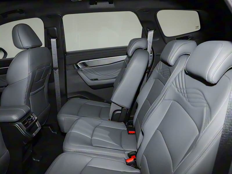 В 6-местном исполнении второй ряд представлен капитанскими креслами с вентиляцией, подогревом и массажем, а также подлокотниками и продольной регулировкой. В случае 7-местного варианта третий ряд можно сложить в ровный пол, увеличив багажник до 2050 литров при сложенных двух рядах.