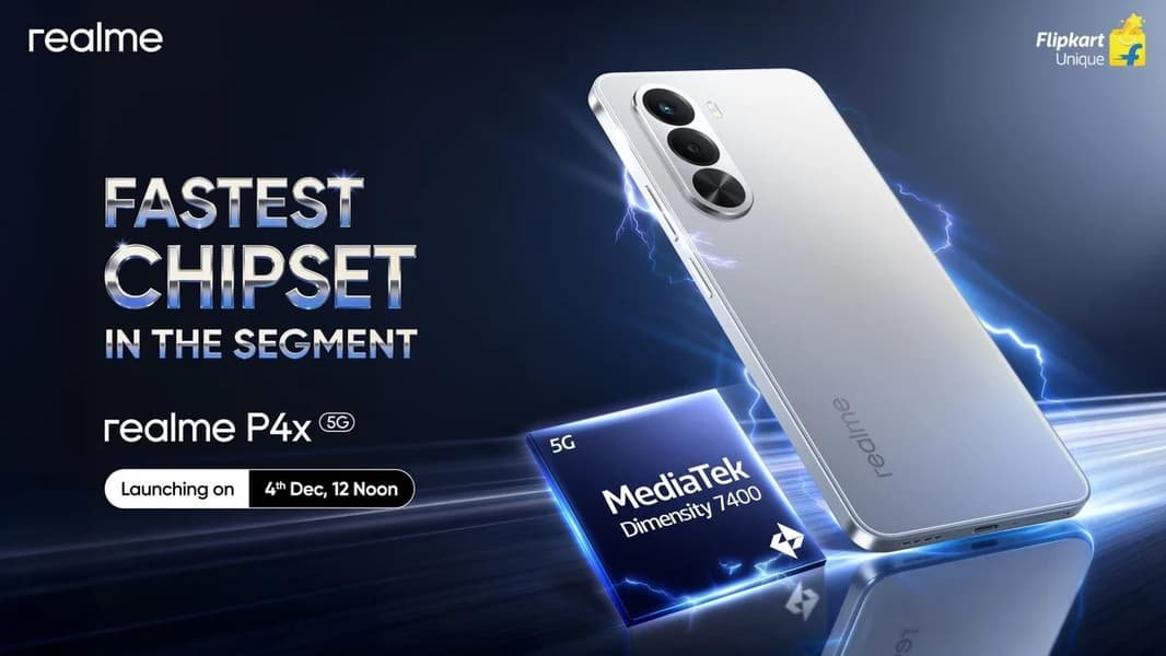 Realme готовится к запуску нового смартфона Realme P4x 5G: премьера состоится в Индии 4 декабря одновременно с анонсом умных часов Realme Watch 5. Оба устройства уже появились на местном маркетплейсе Flipkart, где раскрыты ключевые характеристики. Тем временем инсайдер Абишек Ядав опубликовал цены на все конфигурации смартфона.