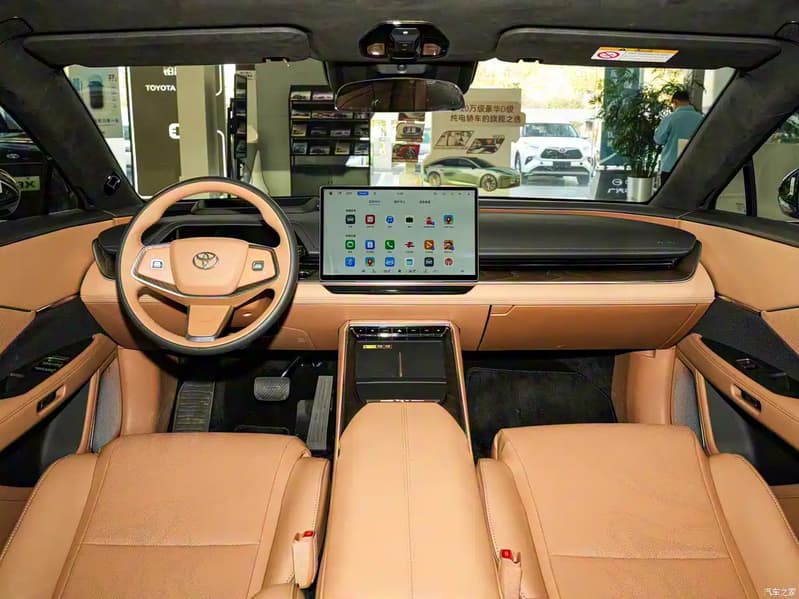 Toyota bZ7 — это крупный электрический седан, выполненный в новом фирменном дизайне Toyota (как у нового Prius, Camry, RAV4). Габариты машины составляют 5130×1965×1506 мм при колесной базе 3020 мм. В салоне установлена информационно-развлекательная система на базе программной платформы Huawei HarmonyOS 5.0 — такого нет у китайской Camry. Все сиденья оснащены подогревом, вентиляцией и функцией массажа, а беспроводная зарядка для смартфона доступна и спереди, и сзади.
