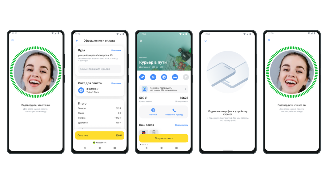 - посмотреть в камеру телефона для подтверждения личности и оформления заказа;