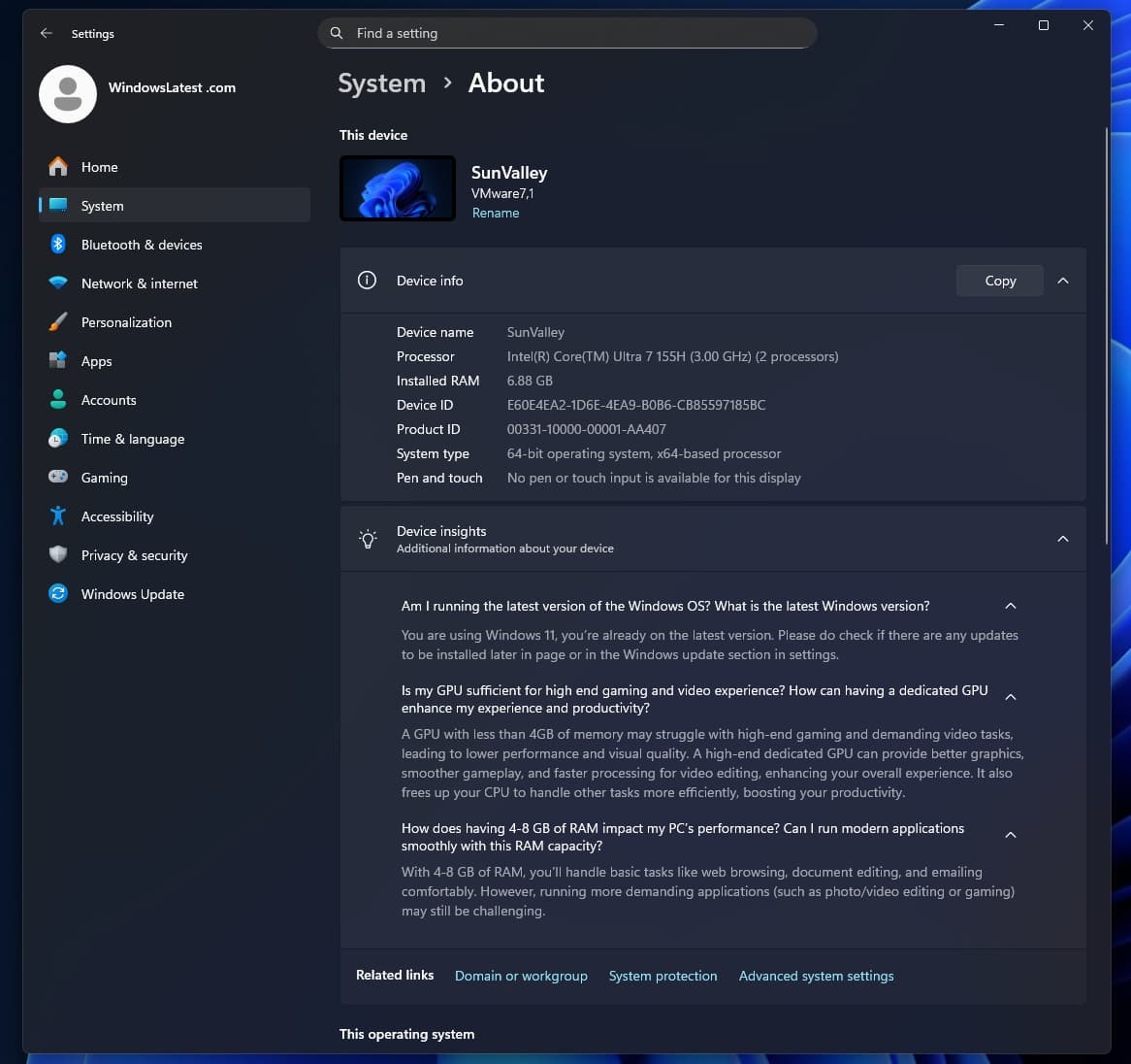 Такую информацию ОС пишет в новом разделе. В настройках Windows 11 в пункте «О системе» сейчас у большинства пользователей есть раздел с часто задаваемыми вопросами. Но в новой сборке KB5070311 вместо него появился новый раздел с анализом конкретного устройства. И у ПК, который оснащён 4-8 ГБ оперативной памяти, в этом разделе написано, что такой объём достаточен только для базовых задач вроде браузинга, работы с документами и электронной почтой. Для более требовательных задач, вроде обработки фото и видео, а также игр, такой объём памяти будет проблемой.
