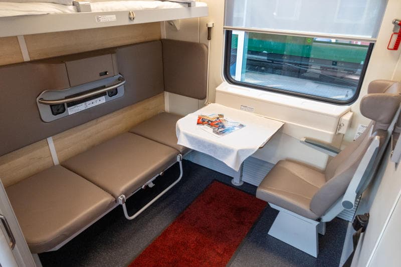 В новом вагоне предусмотрены два специализированных купе для маломобильных пассажиров, два стандартных четырёхместных купе, бытовое помещение с оборудованием для стирки и сушки белья, гладильной доской, шкафами для постельного белья и душевой кабиной. Также имеется багажное отделение с полками-трансформерами и большое кухонное отделение, оснащённое всем необходимым для обеспечения питанием пассажиров поезда.