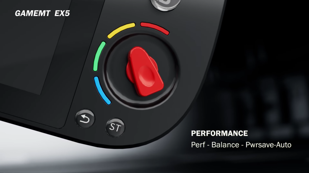 Как можно видеть, на корпусе справа под привычным блоком кнопок расположен не второй стик, а весьма крупный физический переключатель. Он ответственен за переключение между режимами производительности, что само по себе весьма странно, учитывая MediaTek Helio G81 в основе. Но выглядит этот тумблер так, будто это решение от какого-то промышленного оборудования.