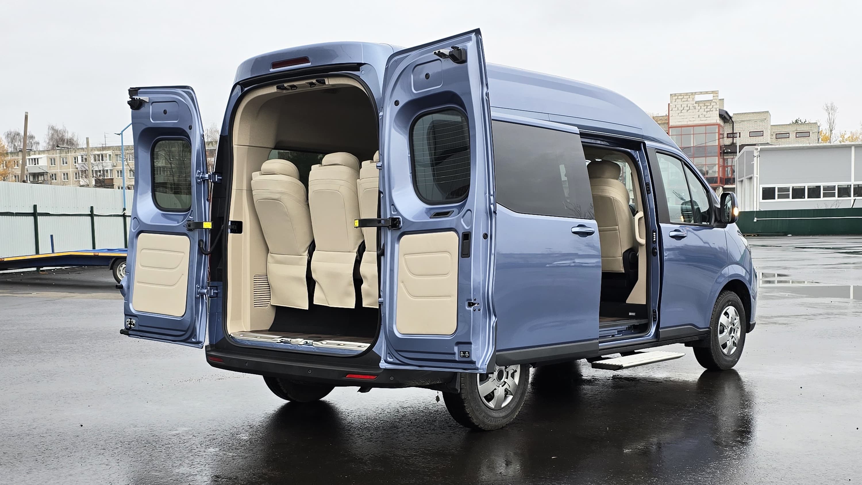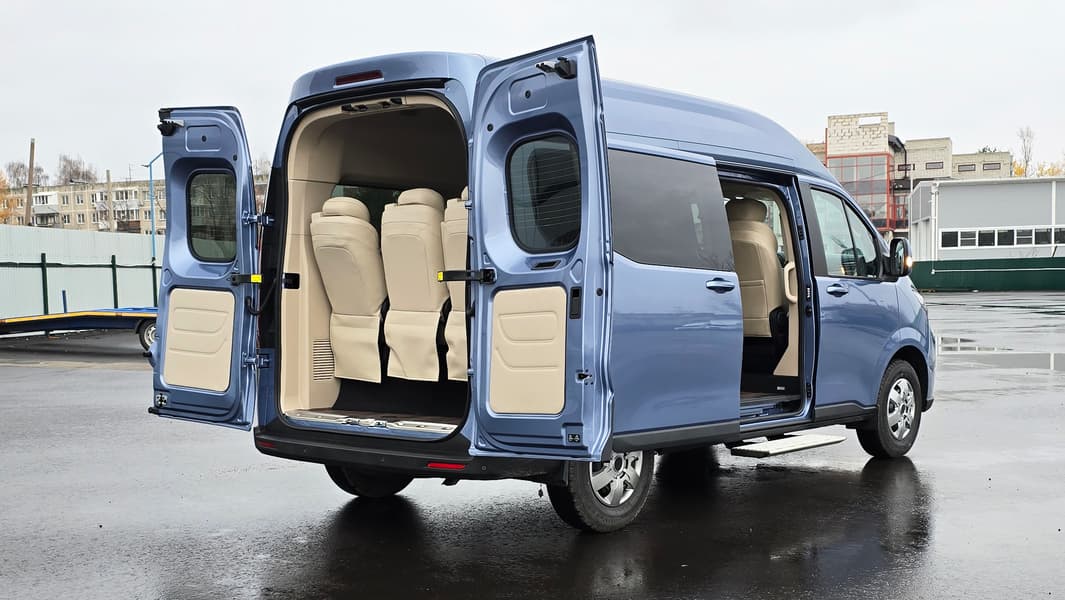 Габариты Kapitan EHA составляют 5364×2030×2420 мм, колёсная база — 3366 мм, полная масса — до 3500 кг. На сайте показана версия с посадочной формулой 8+1, при этом в спецификации упоминается и вариант 11+1.
