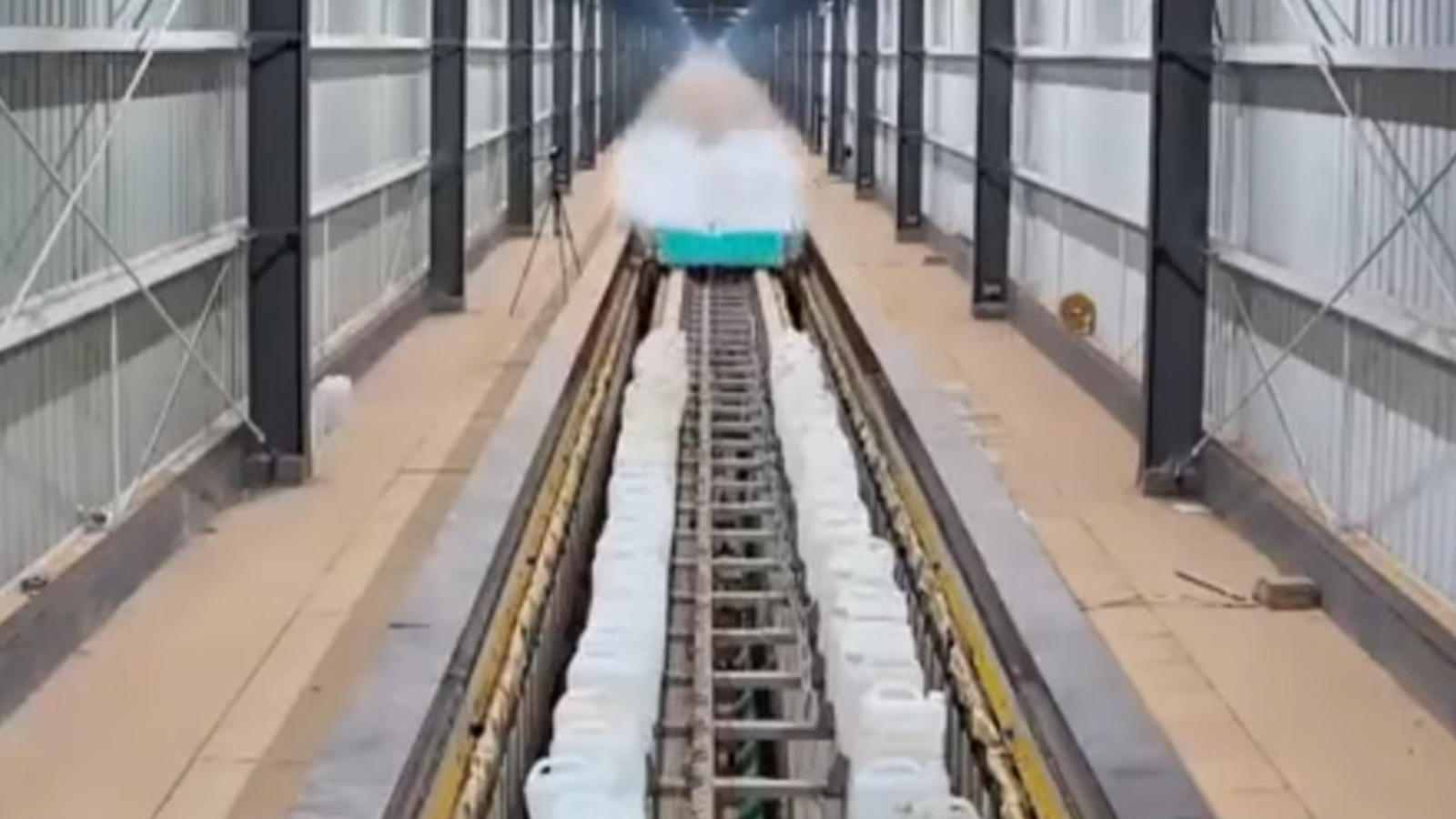 Испытания проходили на трассе длиной около 400 метров, при этом платформа массой около тонны смогла не только набрать требуемую скорость, но и относительно безопасно остановиться. CCTV назвал эксперимент мировым рекордом.
