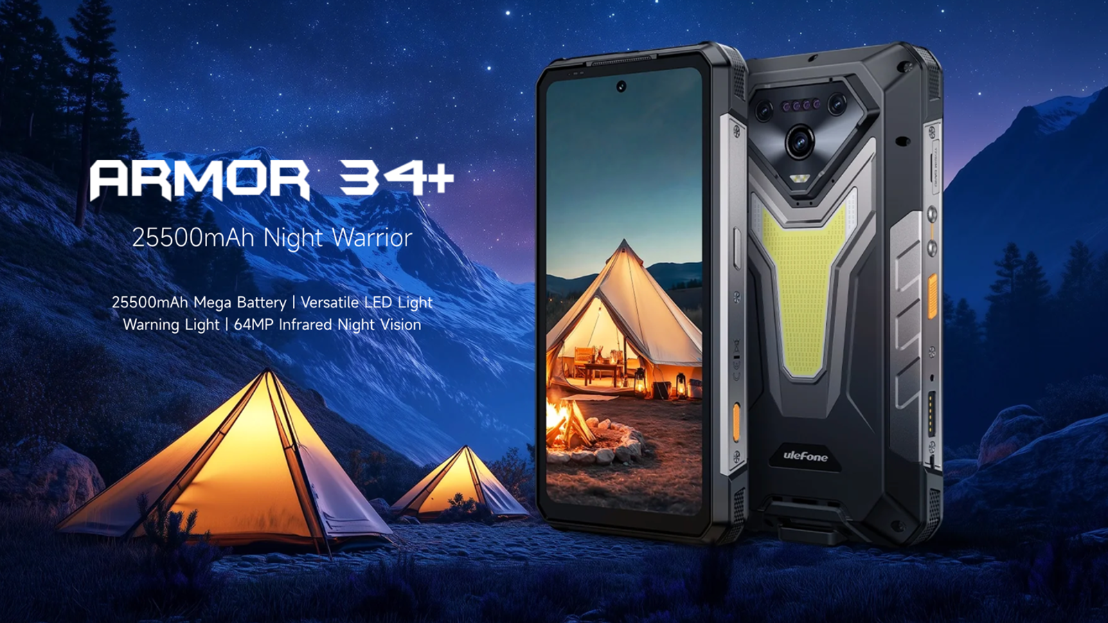 Armor 34+ и Armor 34 Pro+ получили LED-фонарь яркостью 1100 люмен, 50-мегапиксельную камеру, камеру ночного видения, экран с диагональю 6,95 дюйма, разрешением Full HD+ и кадровой частотой 120 Гц. Объем оперативной памяти — 16 ГБ, флеш-памяти — 512 ГБ. В качестве ОС выступает Android 15.