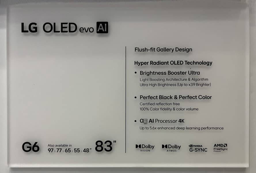 Ожидается, что G6 будет предлагать частоту обновления 165 Гц, Dolby Vision HDR для игр, автоматический режим низкой задержки HDMI, а также поддержку AMD FreeSync Premium Pro и Nvidia G-Sync. Также сообщается о наличии беспроводных функций, таких как AirPlay 2 и Google Cast.