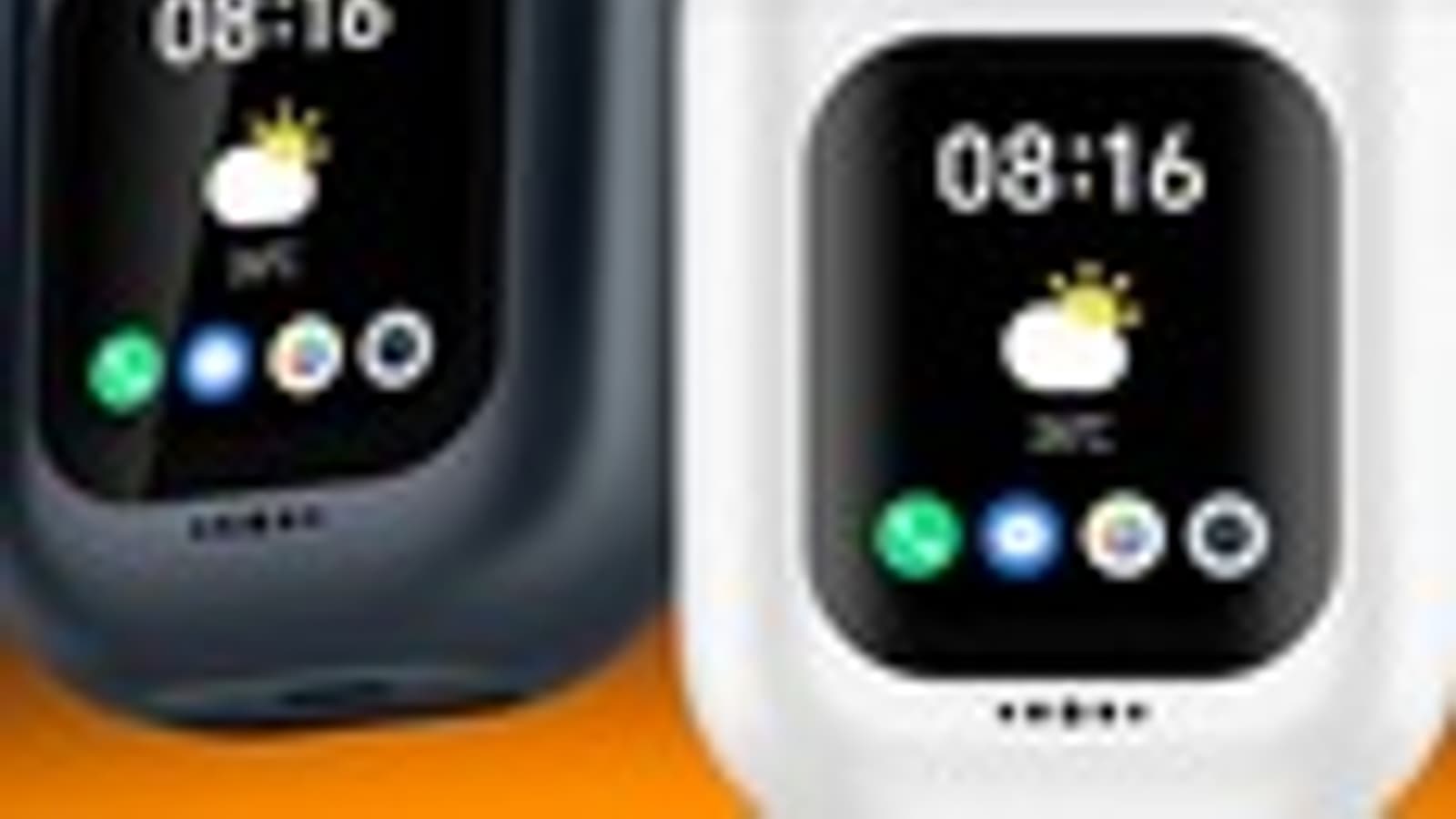 На единственном изображении видны черный и белый футляры для хранения и зарядки наушников, которые оснащены встроенным экраном. На экране видны иконки различных приложений, включая телефон, сообщения, галерея и камера. Логично предположить, что на экране можно будет просматривать фотографии и использовать его в качестве видоискателя.