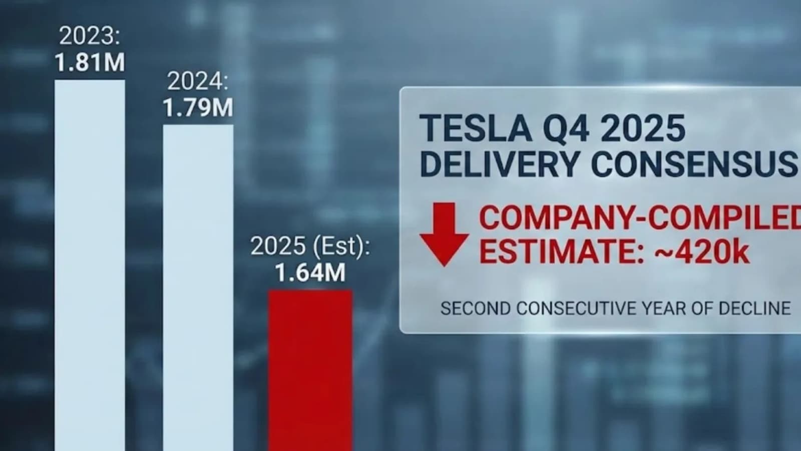 Компания ожидает, что за квартал продаст 422 850 автомобилей против 497 099 авто годом ранее. По итогам всего года продажи составят 1,64 млн авто. Для сравнения, в 2024 году было реализовано около 1,79 млн машин, в 2023 году Tesla продала 1,81 млн, а в 2022 году было реализовано 1,64 млн.