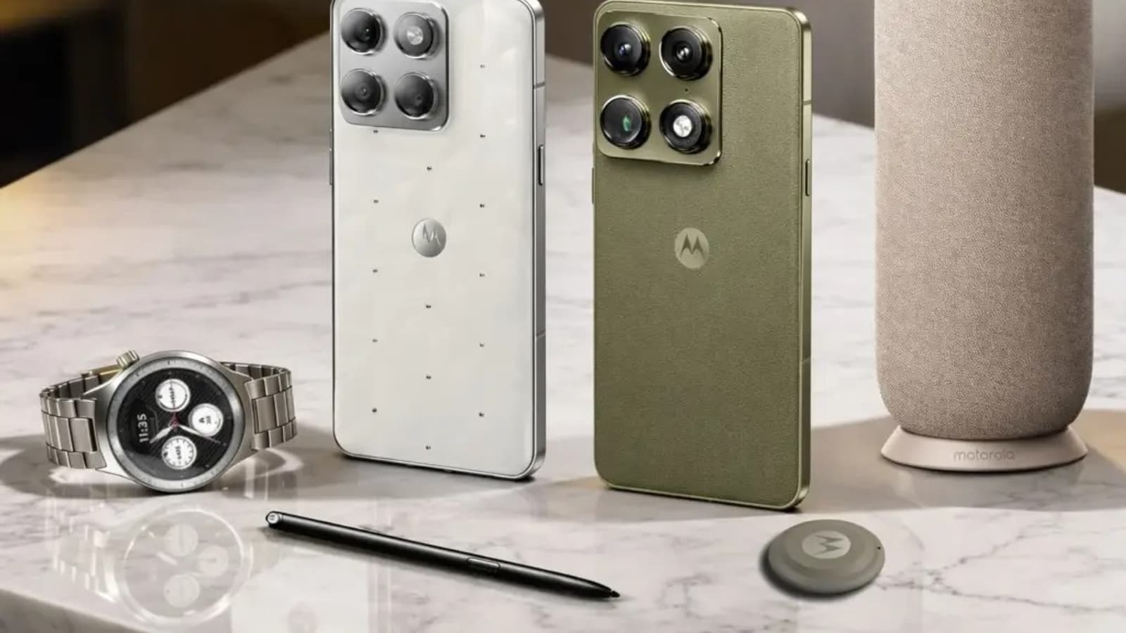 На том же рекламном постере засветились и другие устройства компании: умные часы, трекер, предположительно Moto Tag 2, колонка и специальная версия Edge 70 с кристаллами Swarovski.