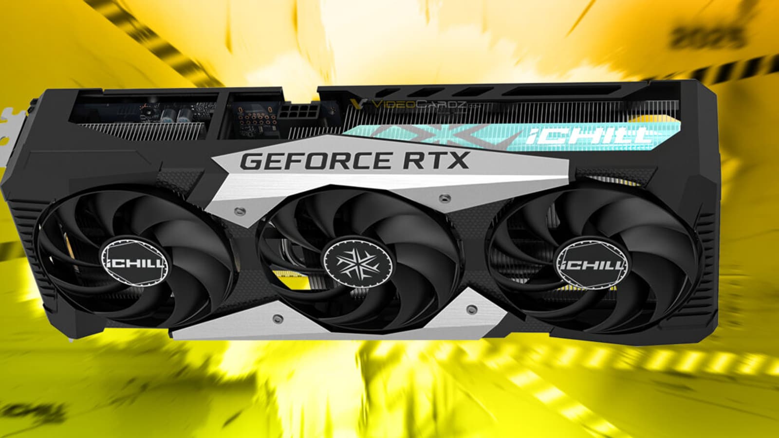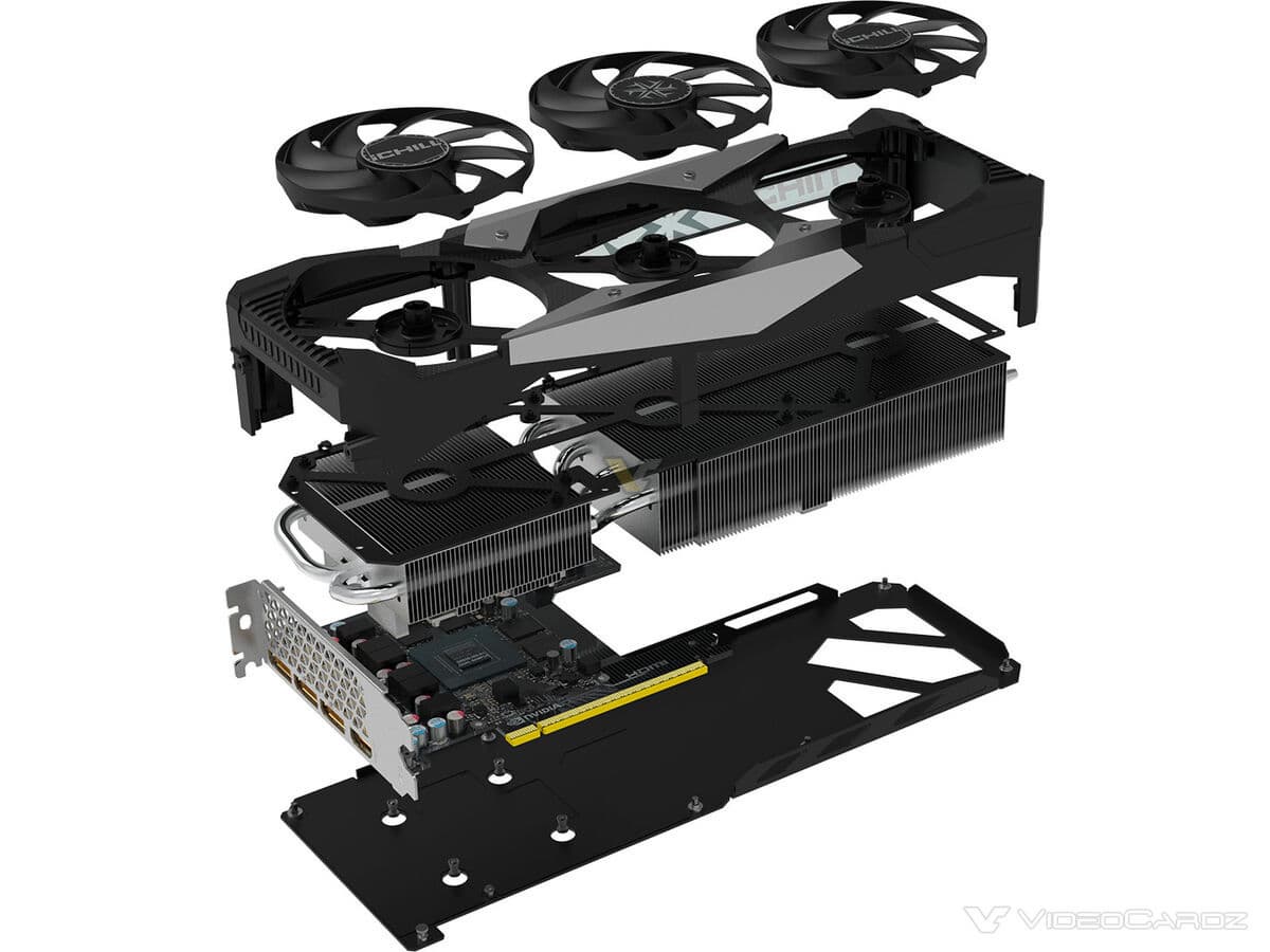 Сама карта, кроме этого, выделяется крупной системой охлаждения и странно обрезанной печатной платой. Такая же использовалась для создания модели RTX 5060 iChill.