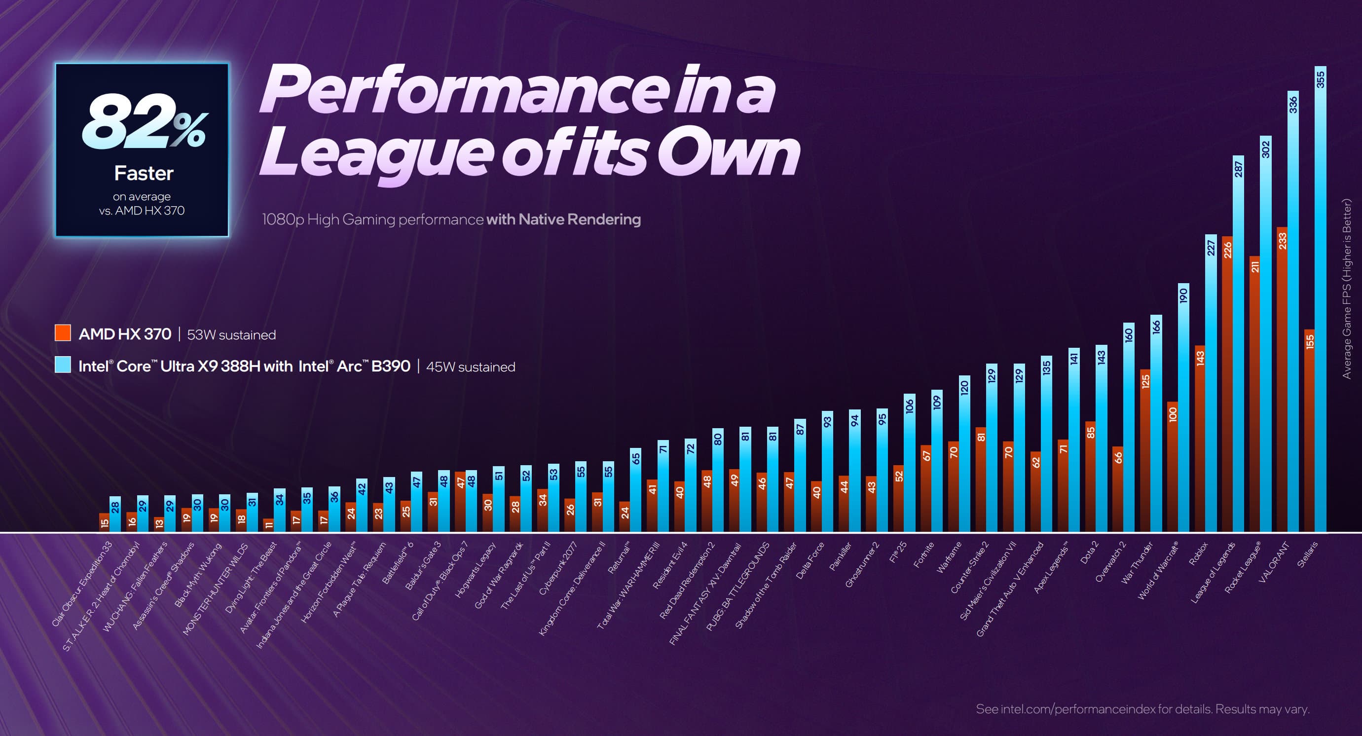 Компания Intel представила свой флагманский интегрированный графический процессор (iGPU) под названием Arc B390. Компания считает, что этот графический процессор значительно быстрее конкурента в лице Radeon 890M (в составе процессоров Ryzen AI 300). По данным самой Intel, в среднем Arc B390 на 73% быстрее Radeon 890M. И даже больше: в компании считают, что их «встройка» достигает уровня производительности дискретной Nvidia GeForce RTX 4050 Laptop (в конфигурации с энергопотреблением 60 Вт).