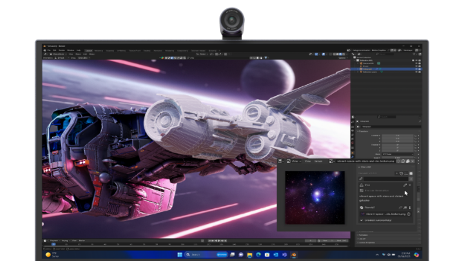 Что касается той самой камеры, она имеет разрешение 4K. Её можно наклонить так, чтобы она захватывала рабочее пространство перед экраном. И её при желании можно демонтировать.