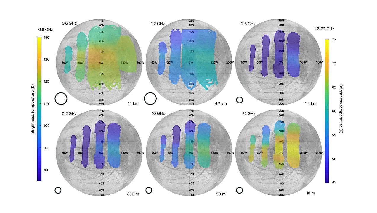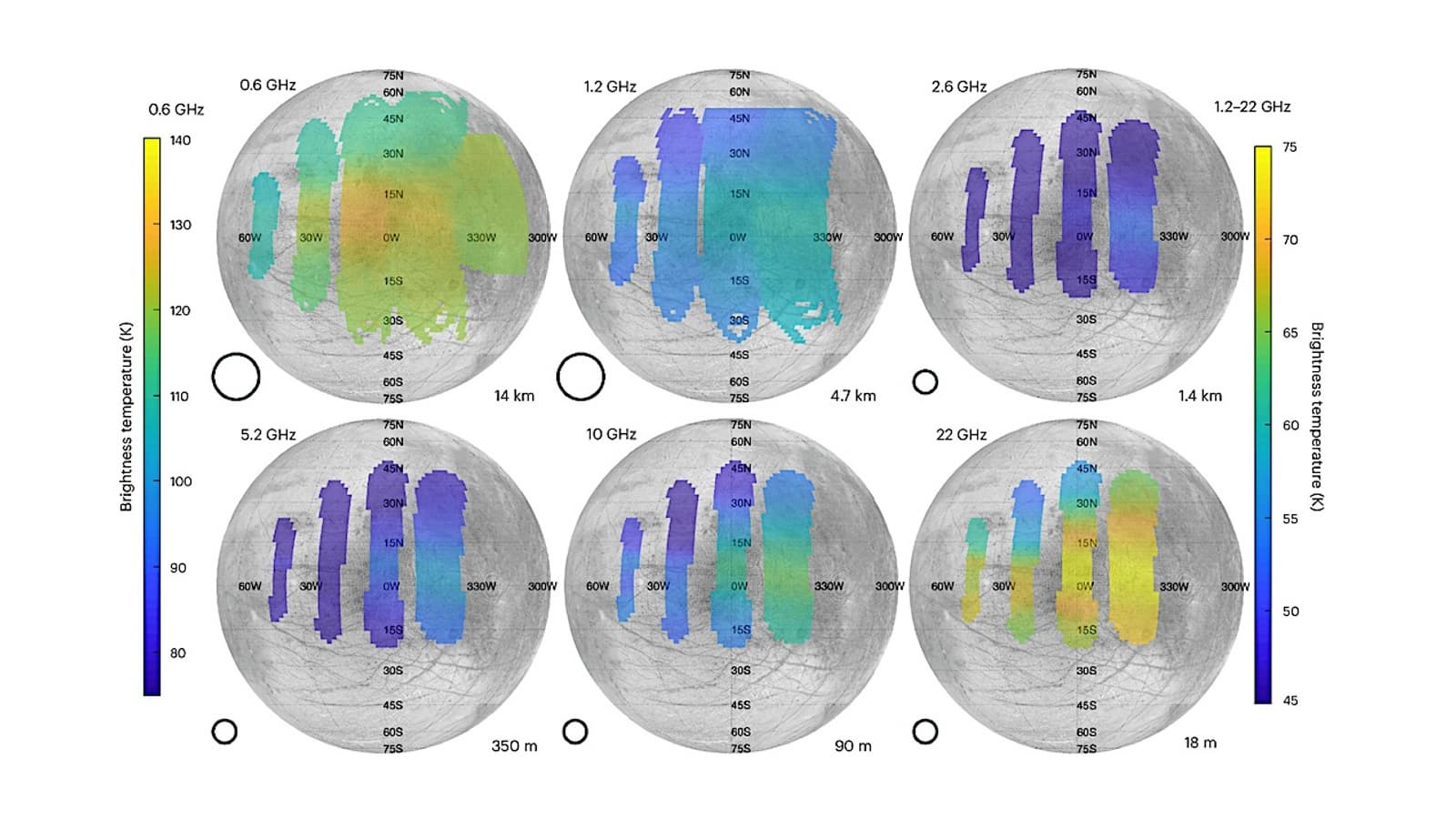 Микроволновый радиометр Juno (MWR) провёл в 2022 году наблюдения Европы, спутника Юпитера, и предоставил данные о толщине и структуре его ледяной коры. Европа считается одним из главных астробиологических объектов в Солнечной системе из-за предполагаемого наличия под поверхностью соленого океана.