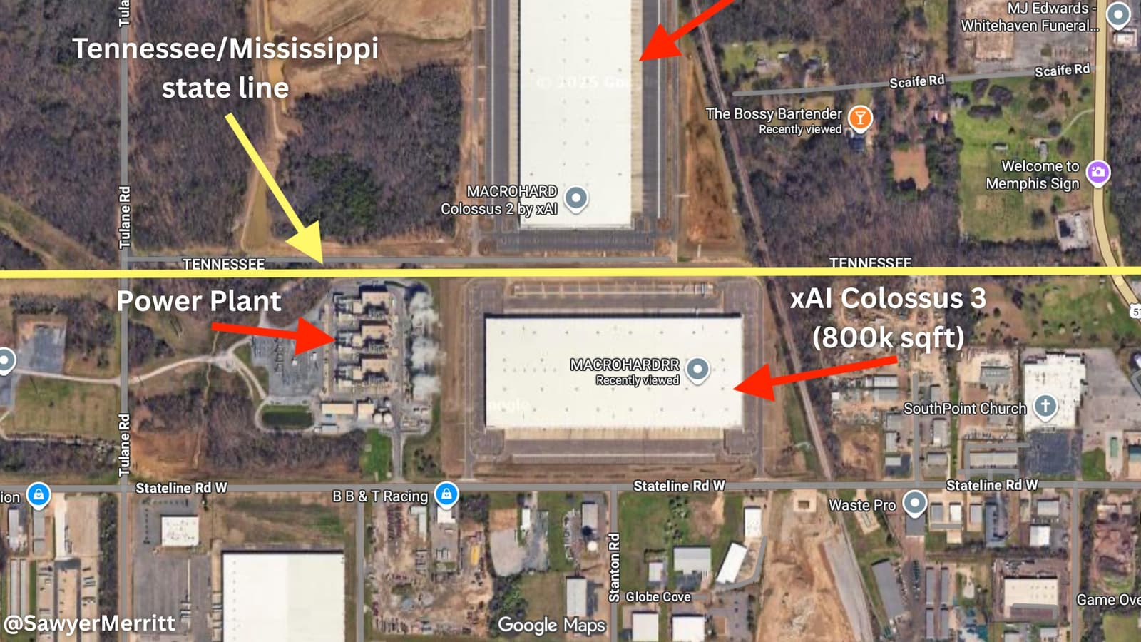 Инвестор Tesla и SpaceX Сойер Меррит (Sawyer Merritt) опубликовал спутниковый снимок, на котором видно новое здание дата-центра Colossus 3, недавно построенное компанией xAI.