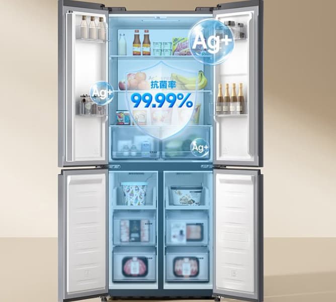Холодильник оснащен инверторным компрессором и вентилятором, что обеспечивает высокую энергоэффективность (потребление всего 0,82 кВт·ч в сутки) и низкий уровень шума (35 дБ). За чистоту отвечает модуль с ионами серебра, уничтожающий 99,99% бактерий.