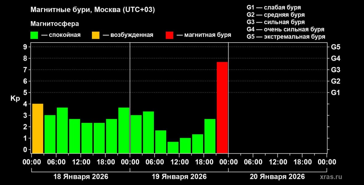 «Центр в Потсдаме, ответственный за формирование планетарного индекса, по своим предварительным данным выдаёт уровень G4.33 при максимально возможном G5. При этом по официальным каналам пока транслируется значение G2,33», — пишет Лаборатория солнечной астрономии ИКИ РАН.