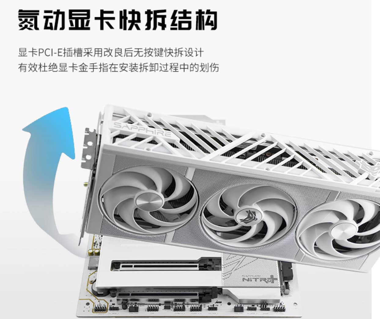 Видеокарты с таким разъёмом уже выпускает сама Sapphire, а также Asus и Galax, но выбор пока достаточно невелик. Что интересно, на плате Sapphire есть ещё одно решение, которое связывает её с Asus. Это механизм Q-Release Slim, который позволяет без лишних движений вытащить видеокарту. Ирония в том, что сама Asus от него уже отказалась.