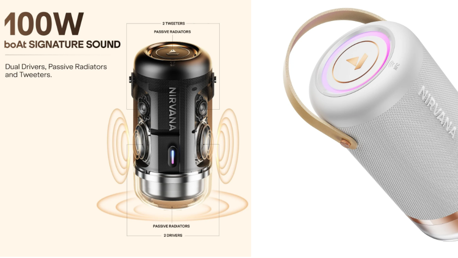 Компания boAt выпустила колонку Nirvana Luxe, которая обеспечивает 100 Вт мощности благодаря четырехканальной системе: два 1,25-дюймовых твитера отвечают за высокие частоты, а два 3-дюймовых сабвуфера — за басы. Звук распространяется равномерно по комнате благодаря 360-градусному пространственному звучанию, а режим Broadcast Mode позволяет объединять несколько колонок для одновременного воспроизведения.