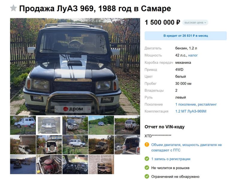 В Самаре на продажу выставили ЛуАЗ-969м 1988 года выпуска, известный как «Ивашка». Просят за серьезно переделанный советский полноприводный внедорожник немало — 1,5 млн рублей. Это самый дорогой ЛуАЗ в России, если ориентироваться на каталог сайта Drom.ru, в базе которого «Ивашка» и представлен.
