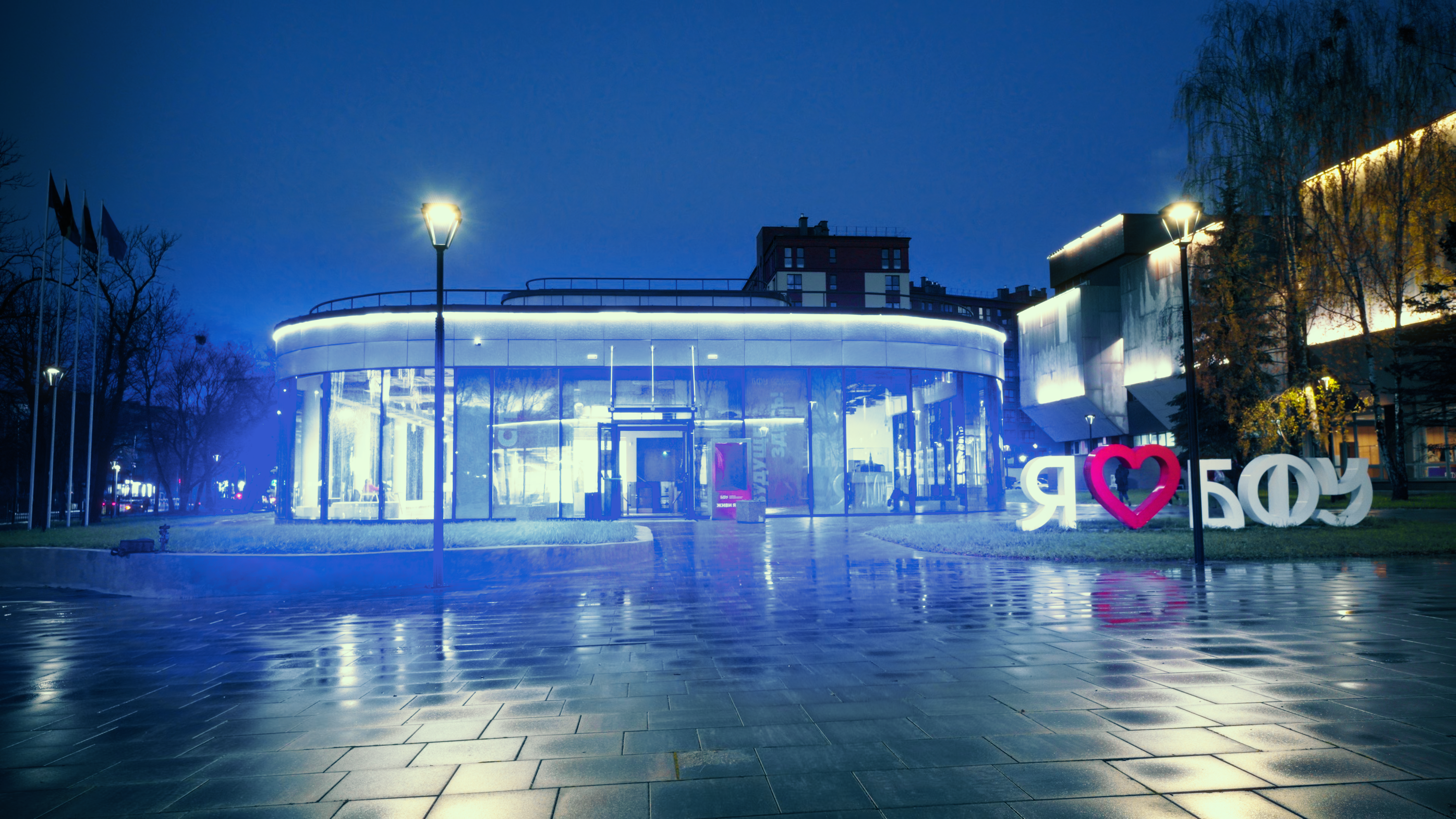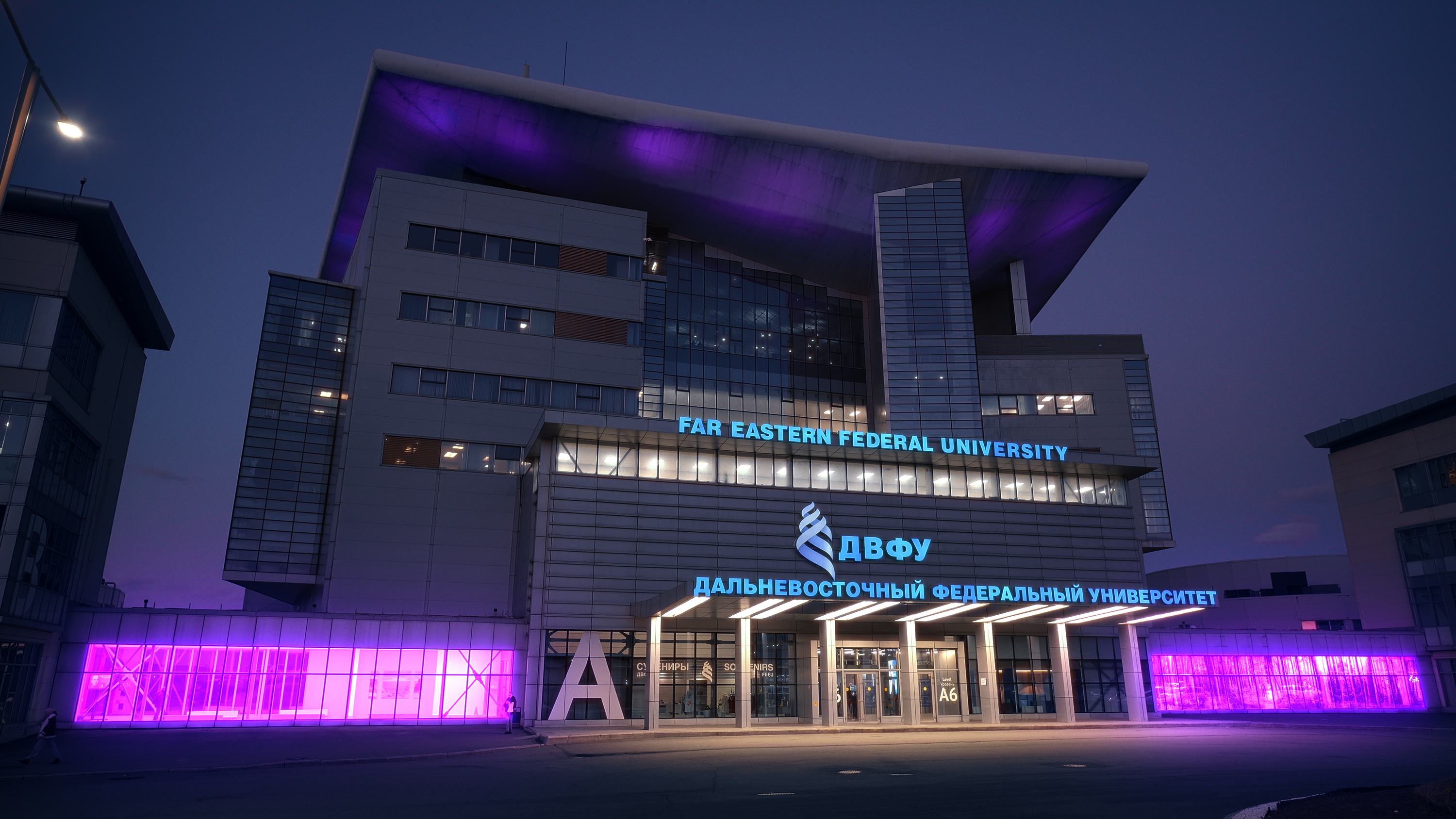 В каждом университете установлена индивидуальная цветовая палитра, состоящая из одного базового и пяти дополнительных цветов подсветки. Всего было установлено 172 светодиодных линейных светильника.