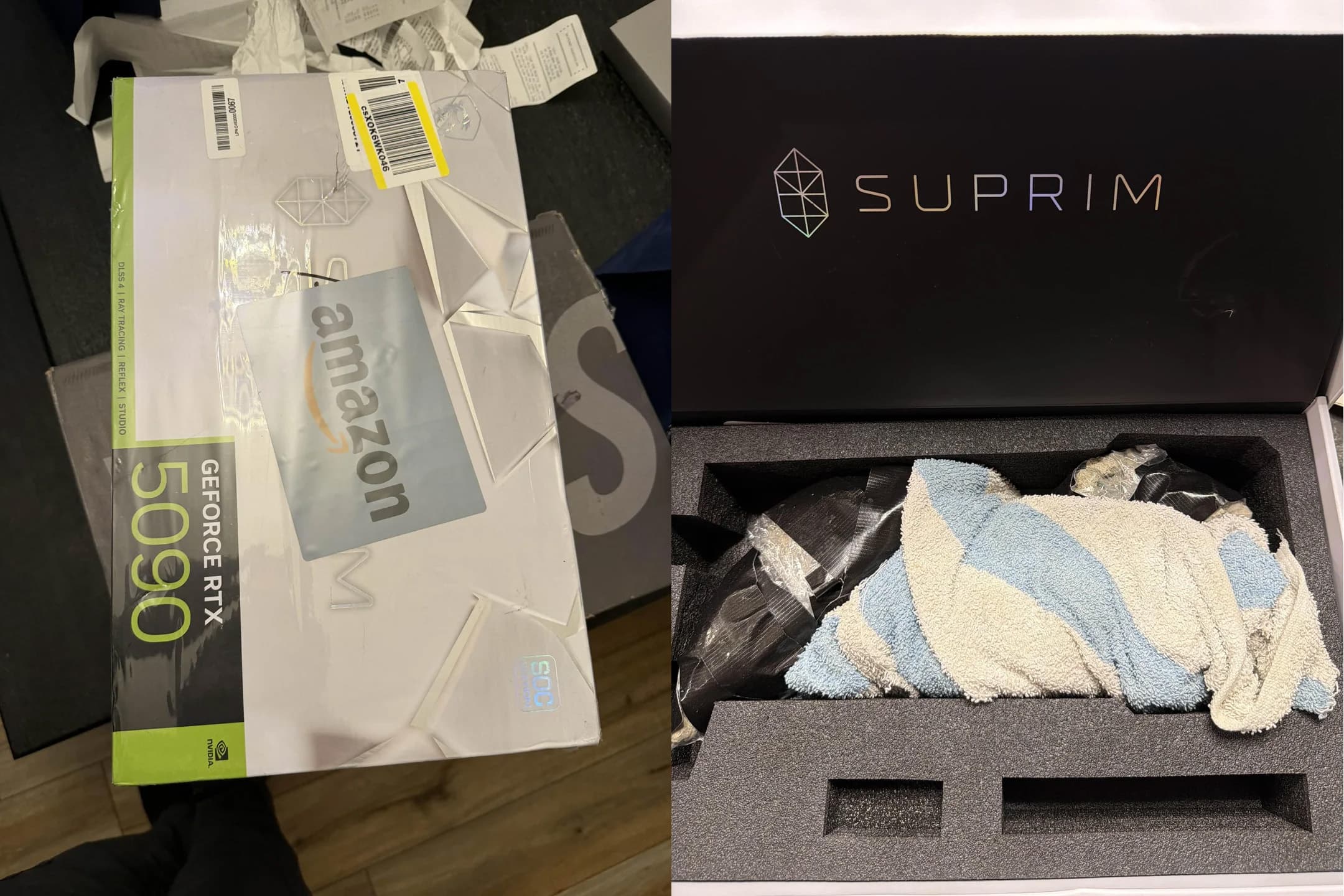 Пользователь Reddit под ником Dazzling_Course8755 рассказал, что заказал MSI SUPRIM GeForce RTX 5090, но внутри коробки оказались лишь камни и полотенце. По словам пострадавшего, он уже четыре раза сталкивался с трудностями при попытке купить RTX 5090 на Amazon, однако в этот раз решил воспользоваться программой Amazon Resale.