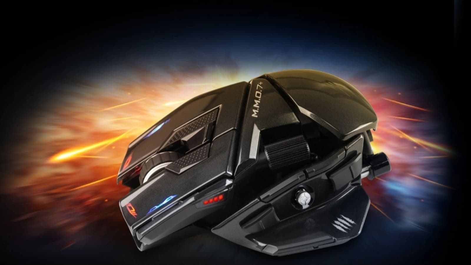 Мышь Mad Catz MMO 7+ сохраняет оригинальный дизайн, оснащена регулируемой в четырех положениях сменной подставкой для ладони и упором для большого пальца, который можно точно настроить вперед, назад, влево и вправо, обеспечивая эргономичную поддержку для игроков с разными размерами рук.