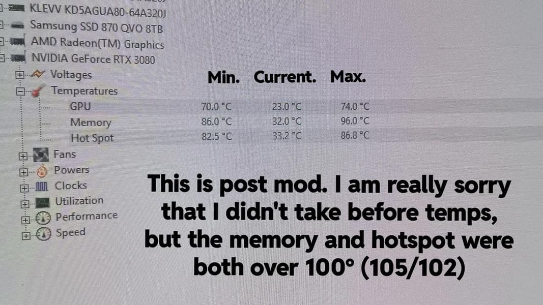 Результат оправдал усилия: температура GPU (Hotspot) упала минимум на 20 градусов. Память все еще нагревается до 96-98 °C, но благодаря огромной теплоемкости алюминиевого блока этот процесс занимает гораздо больше времени. Автор назвал свою работу «проектом любви» и признал, что модификация выглядит немного глупо для устаревшего ускорителя, но она позволила продлить жизнь видеокарте до покупки нового.