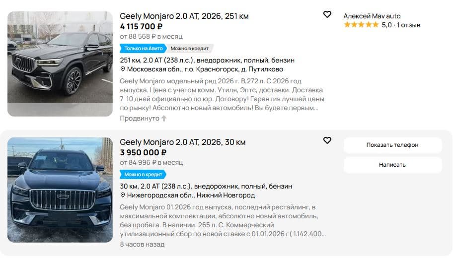 Интересно, что даже после повышения утильсбора «параллельные» Monjaro 2026 остаются дешевле официальных Monjaro 2025 года, которые стоят от 4,55 до 5,05 млн рублей. Правда, с учетом скидок стоимость официальной машины снижается до 4,0 млн рублей, и тут уже в цене «серой» и «белой» машин можно ставить знак равенства.