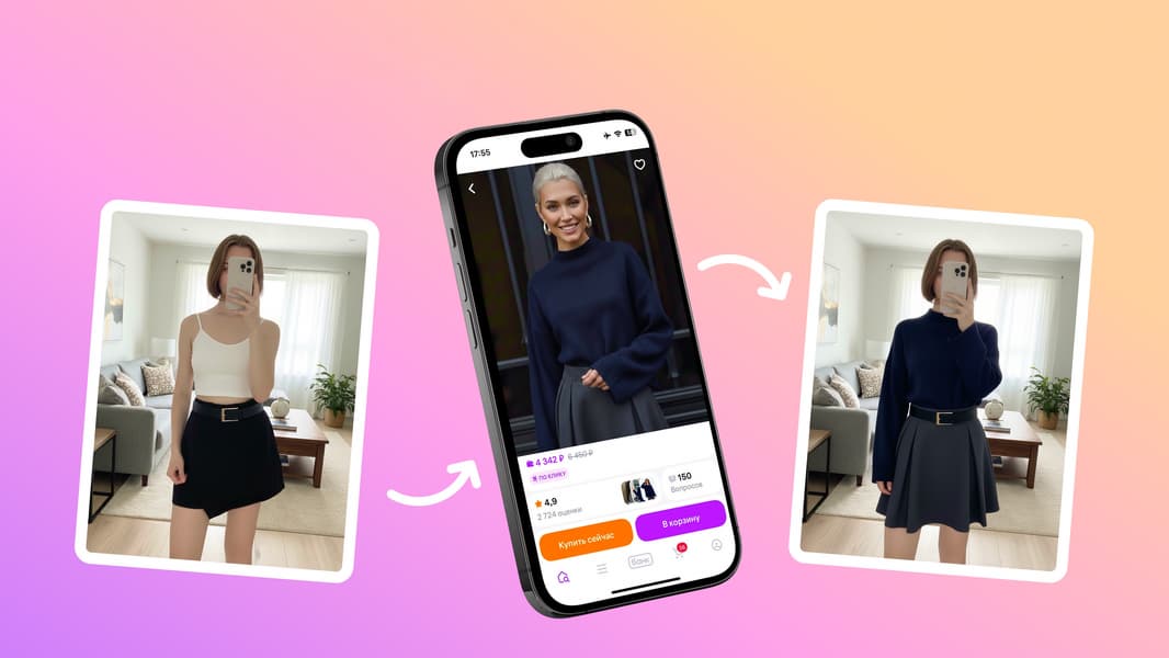 В карточках товаров появилась кнопка «Примерить вещь на себе», а в поиске доступен фильтр для быстрого поиска товаров с возможностью виртуальной примерки. Пользователь загружает фотографию или делает снимок в реальном времени, после чего система генерирует изображение с выбранной вещью, учитывая позу и освещение.