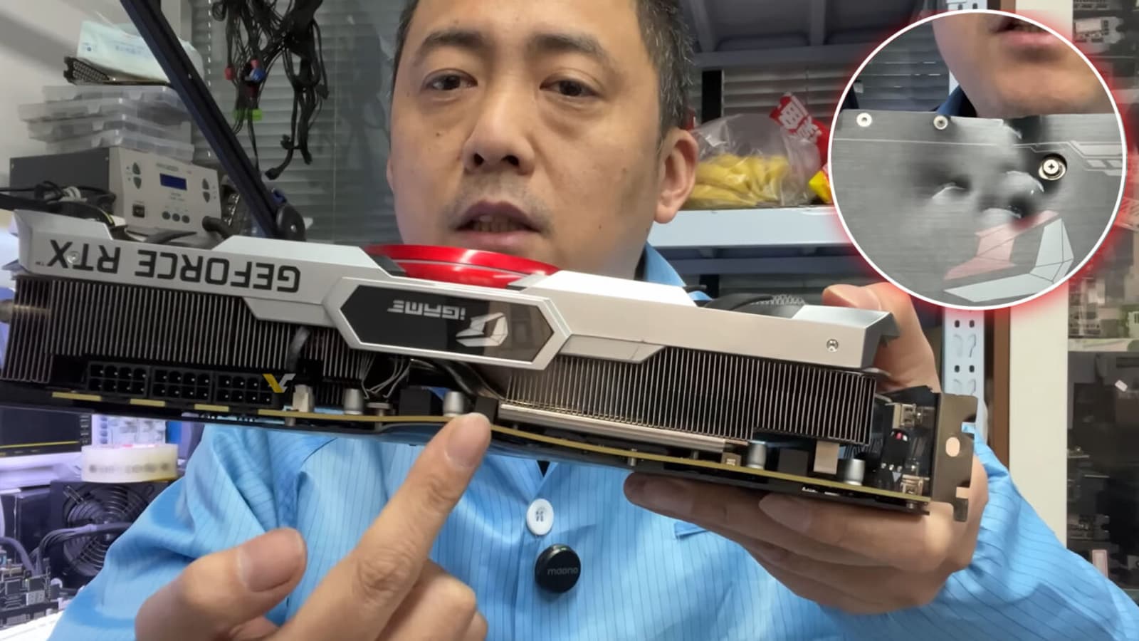 Китайский специалист по ремонту электроники, известный как «Брат Чжан», опубликовал отчет о ремонте видеокарты Colorful RTX 3080 Ti iGame Advanced. Устройство поступило в сервис с механическими повреждениями, происхождение которых оказалось весьма прозаичным: владелец признался, что его девушка дважды сильно ударила по видеокарте, когда компьютер был выключен. Вероятно, парень много времени проводил за компьютером, что не понравилось его девушке.