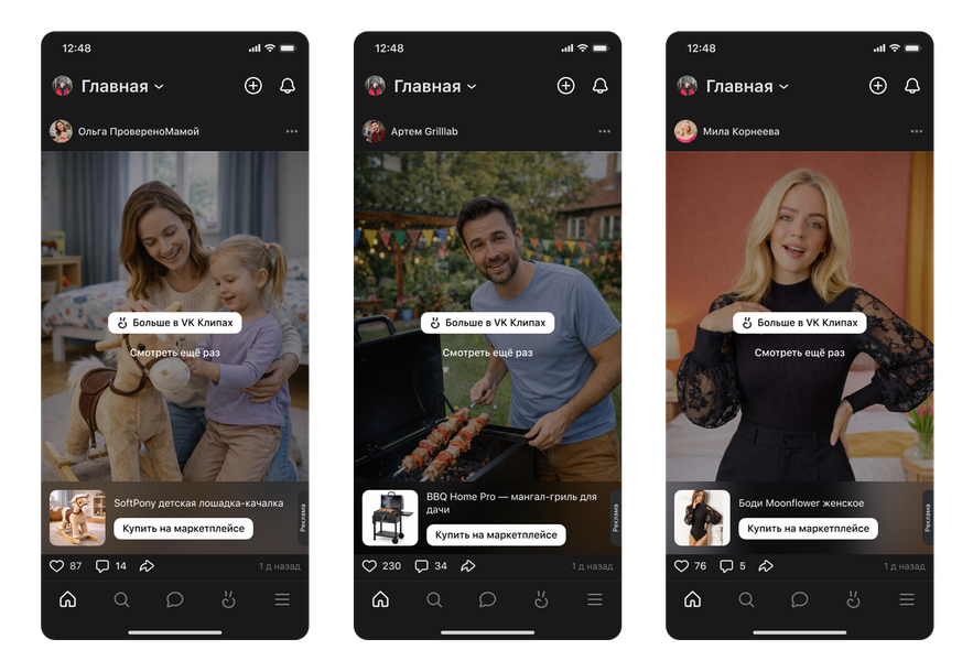 Команда «ВКонтакте» запускает новую функцию для пользователей, позволяющую покупать товары из видео в два нажатия. Социальная сеть автоматически добавляет плашку со ссылкой на товар в авторском контенте. При нажатии на плашку пользователь перенаправляется на страницу товара на маркетплейсе.