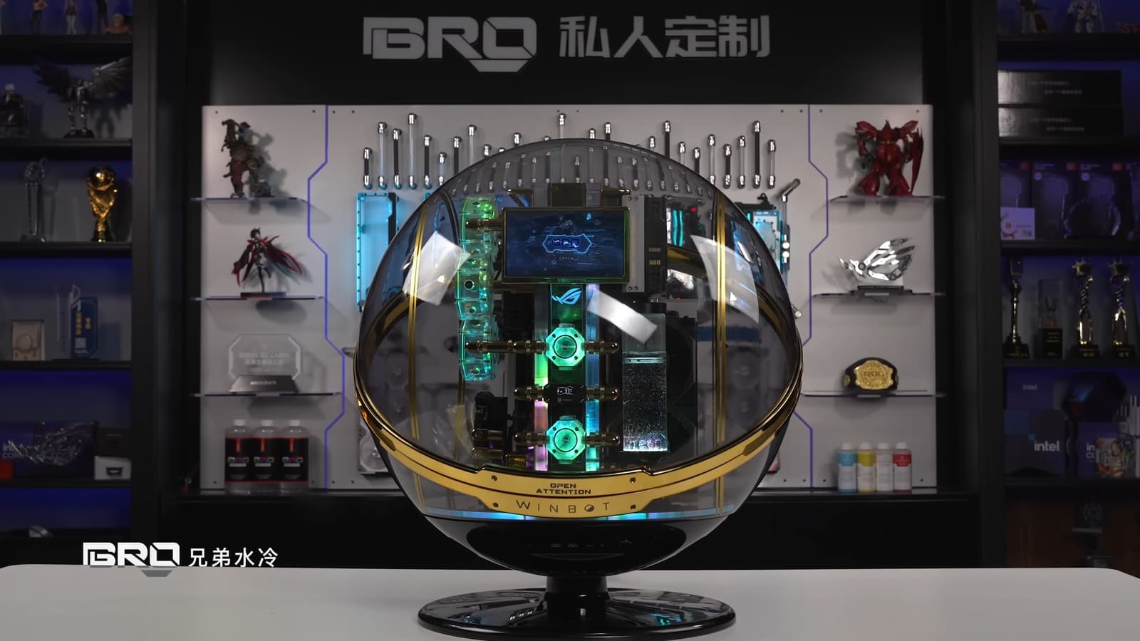 Несмотря на то, что корпус выглядит крайне необычно, это не кастомная разработка авторов, а модель InWin Winbot, хотя и доработанная. Сам корпус стоит около 3000 долларов.