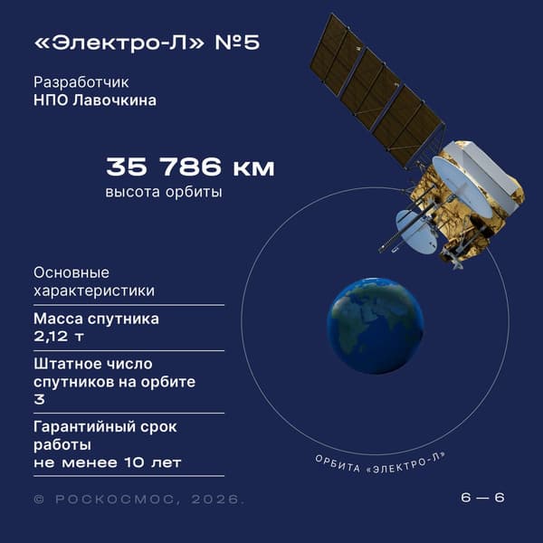 Изначально пуск метеорологического спутника «Электро-Л» №5 планировался на декабрь 2025 года, однако старт пришлось перенести из-за выявленного технического недочета в разгонном блоке.