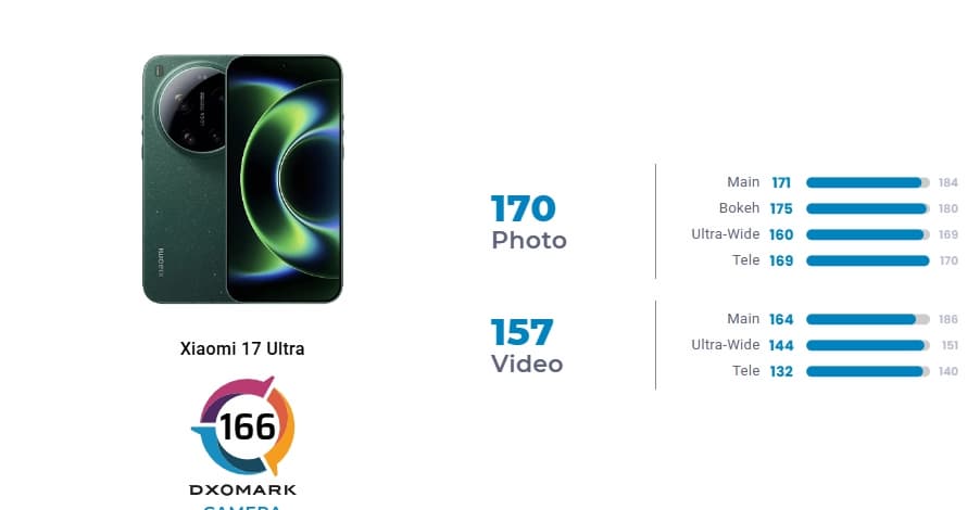 Для сравнения, Xiaomi 15 Ultra и 15 Pro Max имеют по 159 баллов. Таким образом, Xiaomi 17 Ultra является одним из лучших камерофонов на рынке, как минимум по мнению специалистов DxOMark.