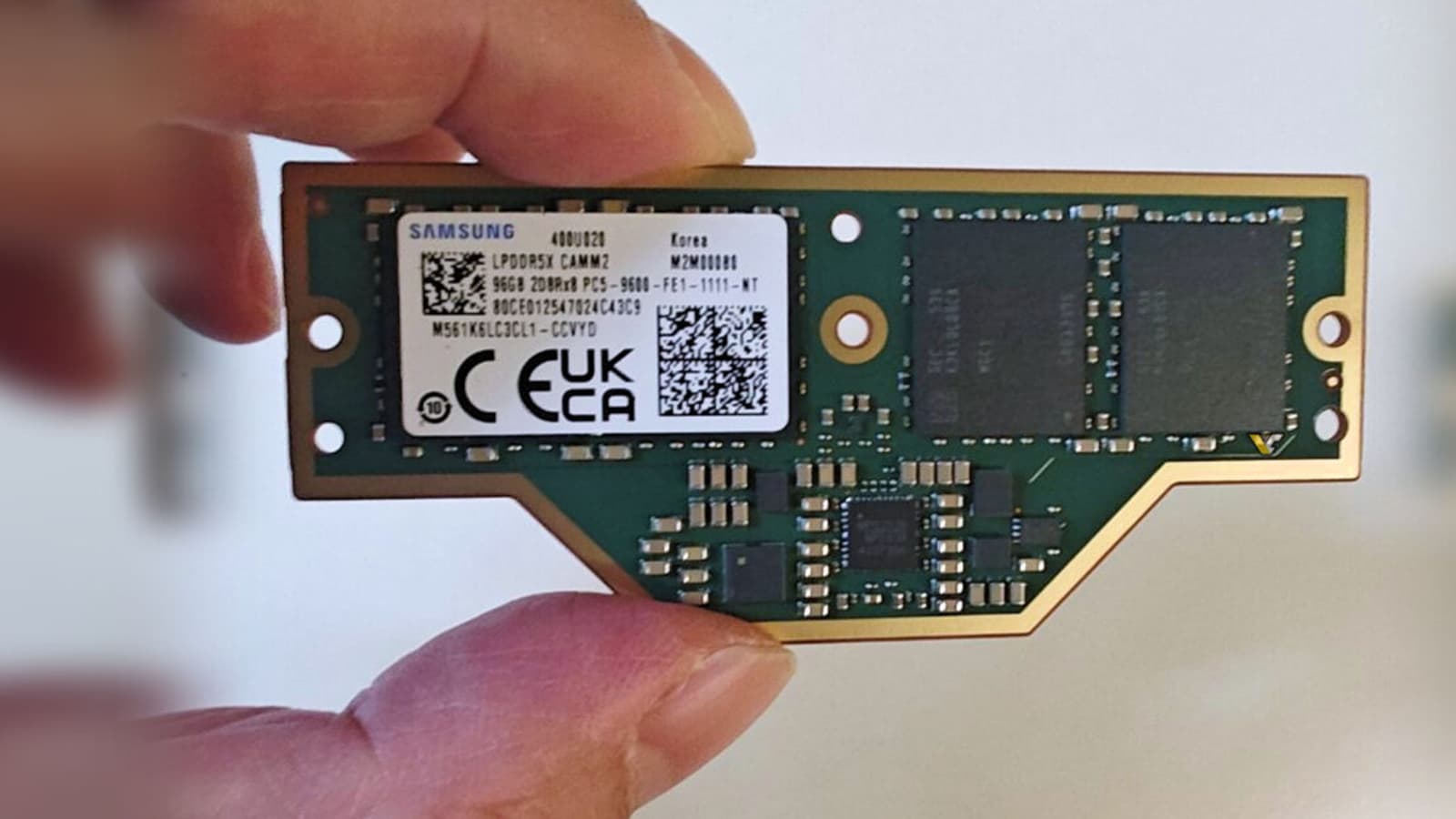 Компания Lenovo показала модуль памяти Samsung LPCAMM2 объёмом 96 ГБ и со скоростью 9600 МТ/с. При этом, как и полагается модулям CAMM2, он очень компактный, что позволяет создавать ноутбуки с огромным объёмом памяти, экономя при этом внутреннее пространство.