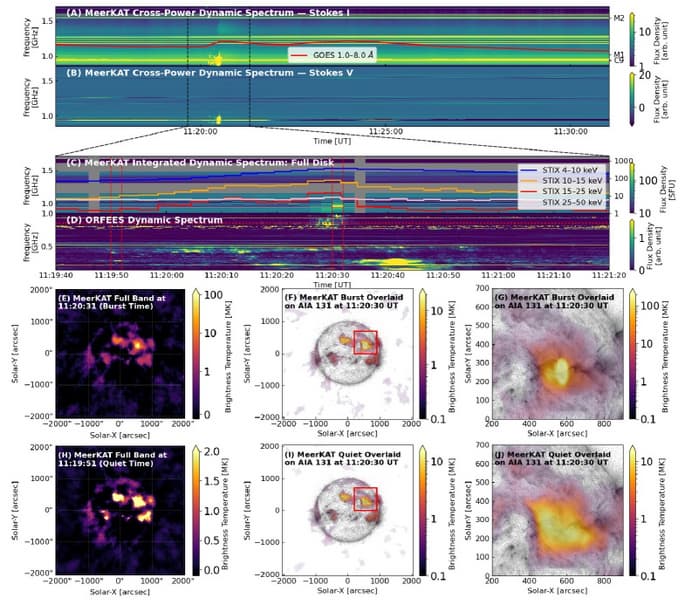 MeerKAT позволил одновременно наблюдать как яркие когерентные радиовсплески, так и слабое некогерентное излучение, исходящее из активной области. Благодаря высокой чувствительности и динамическому диапазону, учёные смогли выделить несколько пространственно разделённых источников радиовсплесков, связанных с разными популяциями ускоренных электронов. Кроме того, обнаружено протяжённое некогерентное излучение, не видимое в ультрафиолетовом диапазоне, что свидетельствует о присутствии горячей разреженной плазмы в солнечной короне.