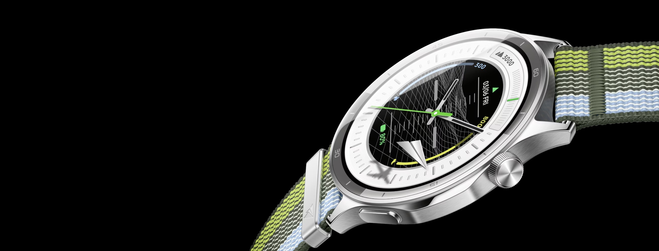 Устройство оснащено 1,46-дюймовым AMOLED-экраном с разрешением 464 х 464 пикселей и плотностью 317 ppi. Его отличительной особенностью является пиковая яркость 3000 нит, обеспечивающая хорошую читаемость на открытом воздухе. Корпус из нержавеющей стали имеет толщину 8,9 мм и весит 35 грамм без ремешка. Часы работают под управлением ColorOS Watch 7.1 и оснащены SoС BES2800BP с 4 ГБ памяти EMMC.