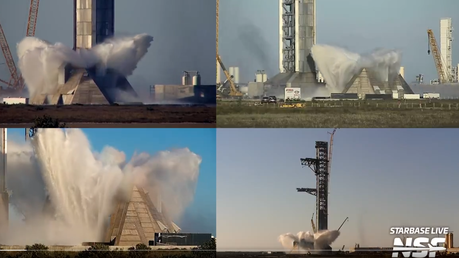 На космодроме Starbase компания SpaceX провела первое полномасштабное тестирование системы пожаротушения на второй стартовой площадке Pad 2 для Starship.