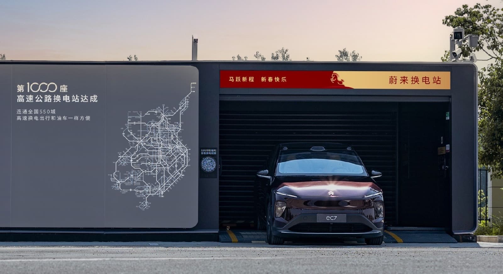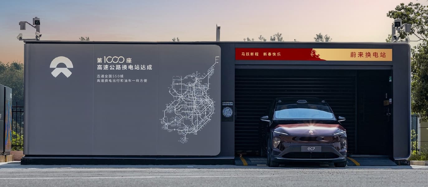 На сегодняшний день компания Nio построила более 8600 зарядных станций и станций замены батарей по всей стране, в том числе более 3700 станций замены батарей и более 1000 станций замены батарей вдоль автомагистралей. Она соединила 16 крупных городских агломераций (9 маршрутов с севера на юг и 11 маршрутов с востока на запад) и 550 городов по всей стране.