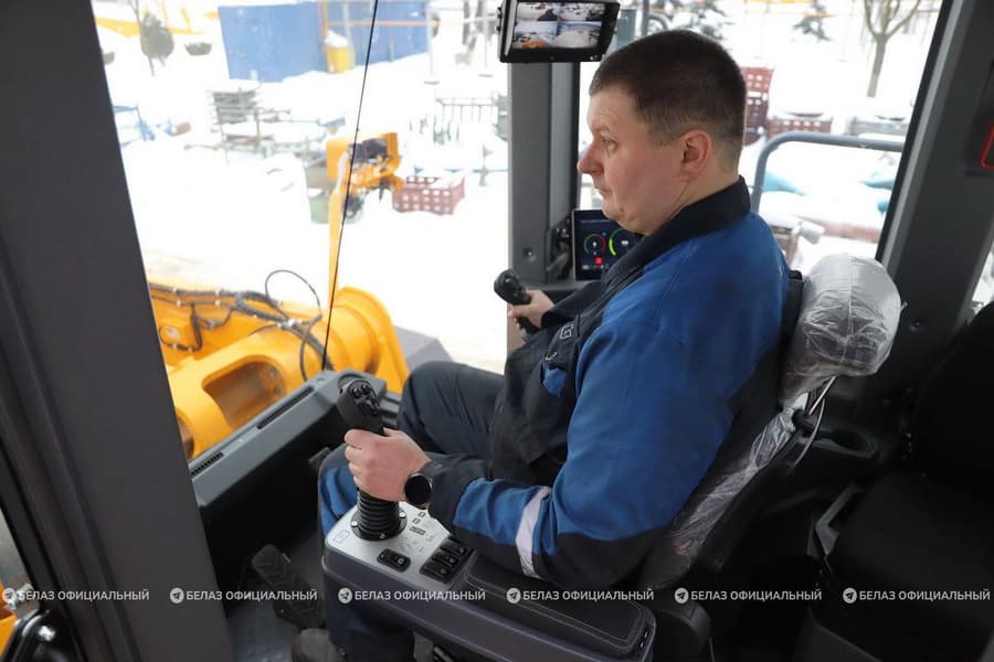 Погрузчик получил 16-литровый дизельный мотор мощностью 606 л.с. и гидромеханическую коробку передач собственной разработки БелАЗа (с формулой 4+4). Грузоподъемность составляет 11,5 тонны, а объем ковша — 6,5 м3.