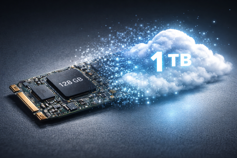 Как выяснилось, за цифрами в заголовках скрывается банальная подмена понятий. Физический объем твердотельного накопителя (SSD) в таких ноутбуках чаще всего составляет скромные 128 ГБ. Недостающий же «терабайт» — это не физический накопитель, а годовая подписка на облачное хранилище Microsoft OneDrive, которая идет в комплекте с пакетом Microsoft 365.