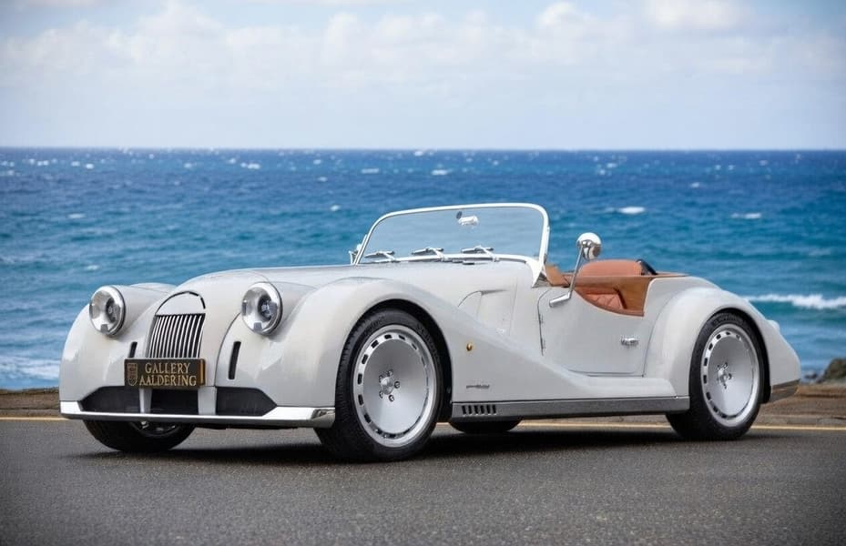 Автомобиль создан совместно Morgan и Pininfarina, сочетая классический силуэт с ретро-эстетикой конца 1930-х – начала 1940-х. Автомобиль окрашен в цвет Grigio Cangiante, а салон отделан бежевой зернистой кожей.