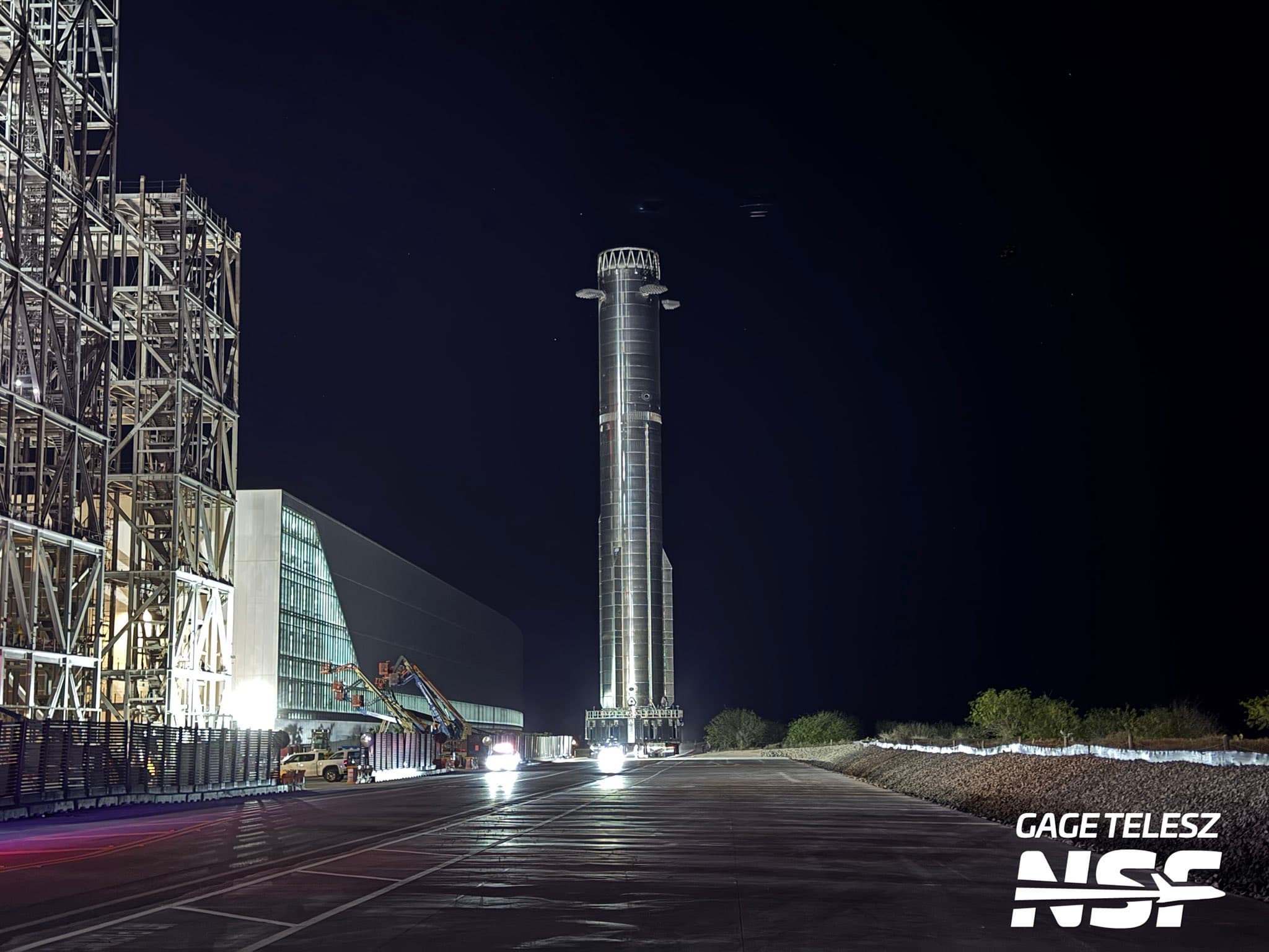 Ускоритель Super Heavy нового поколения (Booster 19) сняли со стартовой площадки и вернули в цех после огневых испытаний.