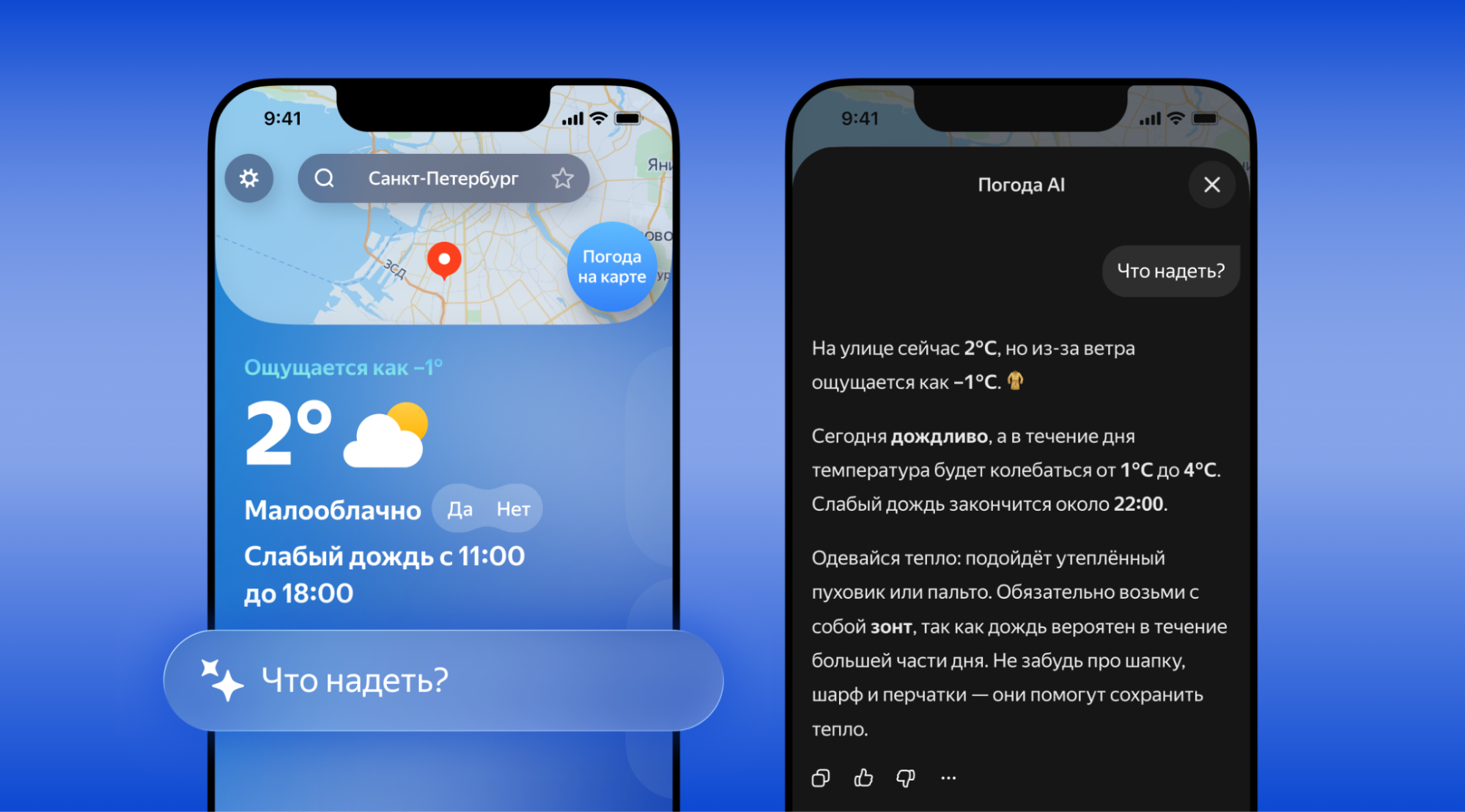 В «Яндекс Погоде» появилась новая функция — ИИ-чат, который поможет пользователям планировать день с учётом погодных условий. Нейросеть на базе технологии Alice AI даёт персональные рекомендации, например, подсказывает, как одеться на прогулку, когда начинать велосипедный сезон или стоит ли менять шины.