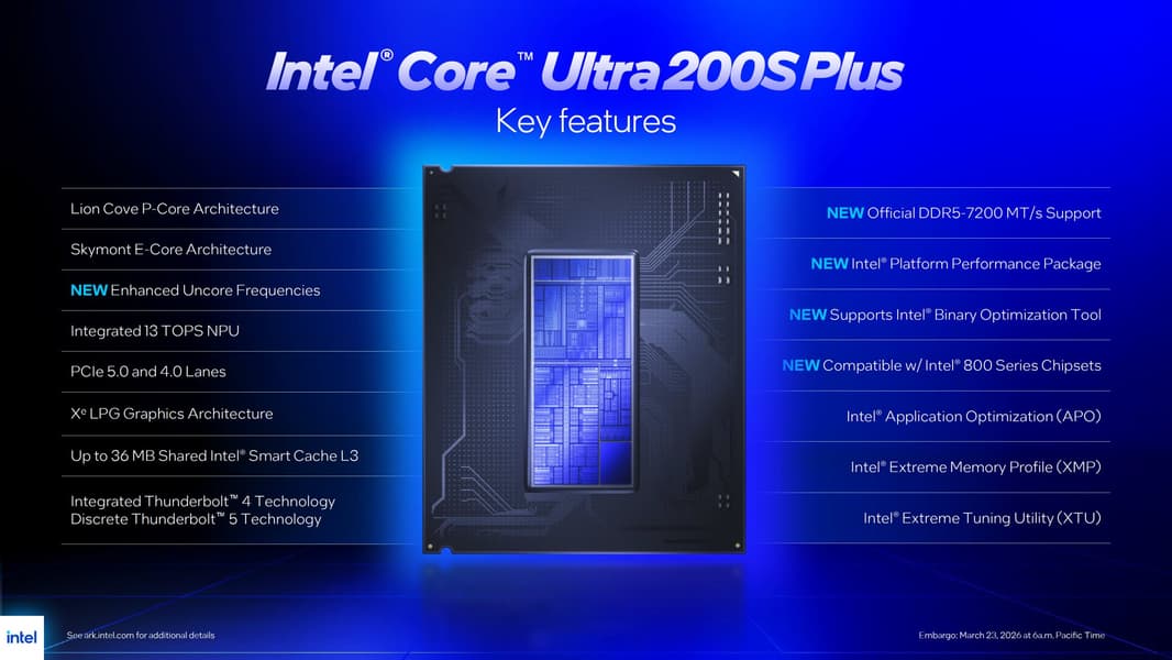 В общем, процессоры мощные, но есть нюанс: они рассчитаны на сокет LGA 1851, который, как ожидается, может быть заменен уже к концу 2026 года. Получается, что тем, кто собирает новый ПК, нет смысла покупать Core Ultra 7 270K Plus или Core Ultra 5 250K Plus, так как потом относительно дешево (без замены материнской платы) обновить платформу не получится. Нет особого смысла покупать новинки и тем, кто использует топовые CPU прошлых поколений, так как разница в производительности невелика (по крайней мере, если говорить о Core i7-14700K и Core i9-14900K). Поэтому насколько востребованным у покупателей окажутся новинки — пока большой вопрос. Продажи Intel Core Ultra 200S Plus стартуют 26 марта.