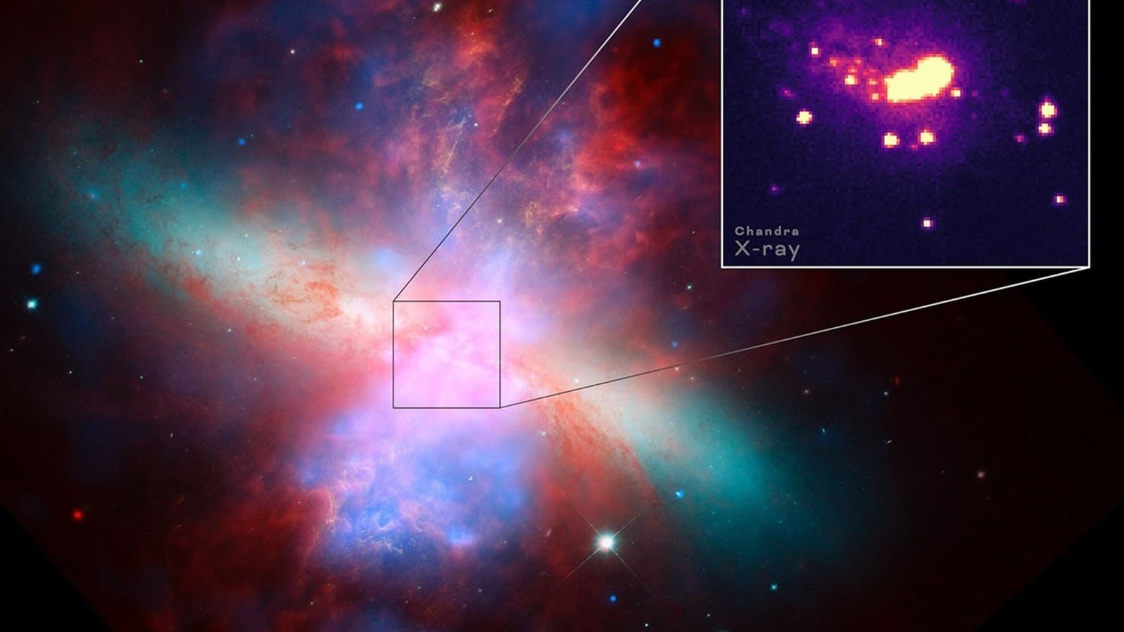 M82, расположенная в 12 миллионах световых лет от Земли, классифицируется как звездообразующая галактика, где звёзды формируются в 10 раз быстрее, чем во Млечном Пути. Эта активность создаёт мощные ударные волны, которые нагревают газ до экстремальных температур.