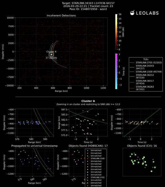 «Компания LeoLabs зафиксировала событие образования фрагментов, связанное со спутником SpaceX Starlink 34343, 29 марта 2026 года». Глобальная радиолокационная сеть LeoLabs немедленно обнаружила десятки объектов вблизи спутника после события», — рассказали в LeoLabs.